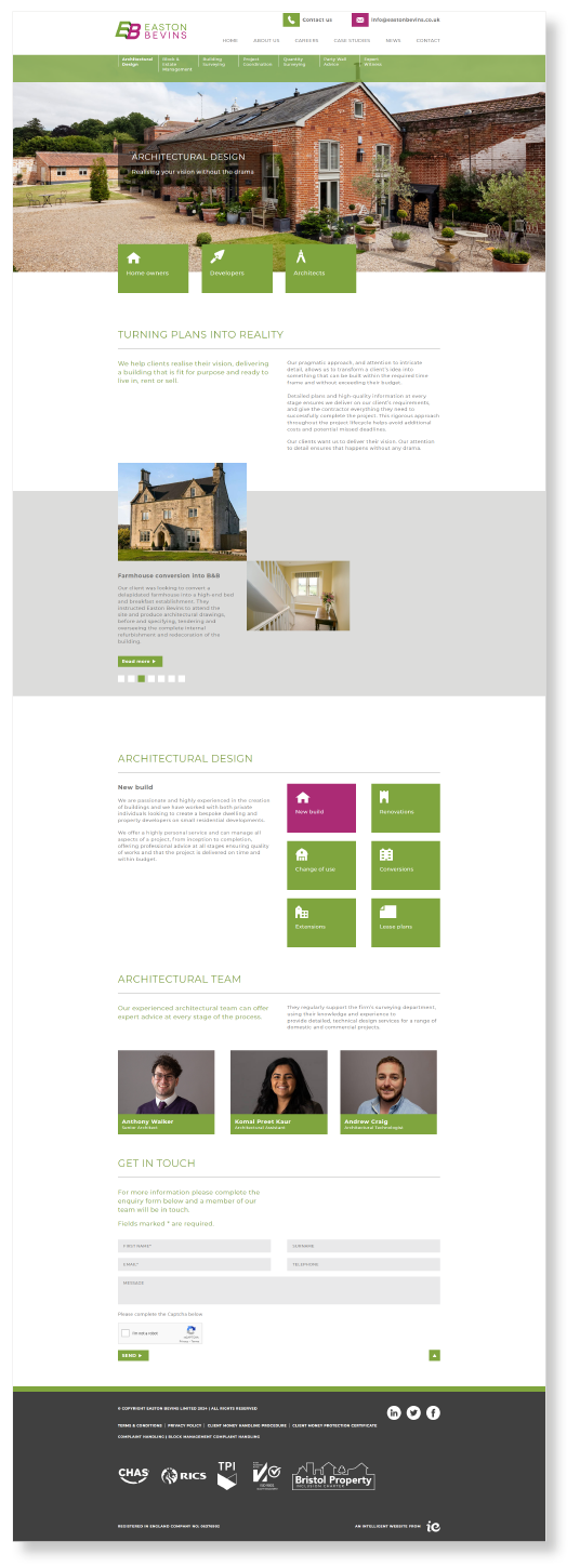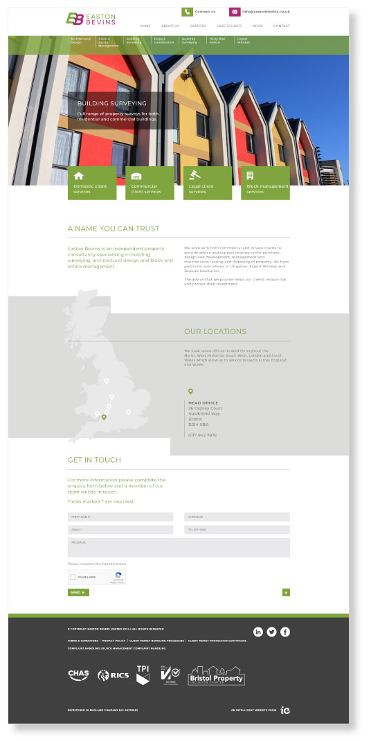Increasing the company’s digital footprint is helping ensure that it is found by prospects searching online for specific services. Case studies showcase examples of key projects they have worked on helping build confidence in their abilities. All in all, the new website is working to accurately position Easton Bevins in the marketplace and encourage more new business enquiries.